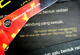 Kacamata yang khusus melindungi mata anda pada saat melakukan pengamatan Matahari ini diproduksi dengan menggunakan filter khusus dan seijin dari Seymour Solar Amerika Dan di Indonesia sendiri kacamata ini diproduksi oleh Toko Teleskop di Jalan. Peneropongan bintang No.3 Lembang- Bandung.